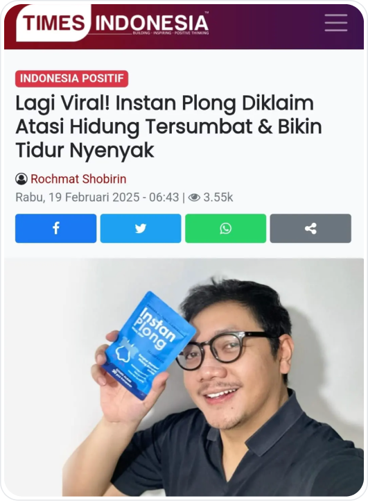 Instan Plong – plester seperti Hansaplast, untuk bantu orang yang susah tidur, karena hidung mampet.